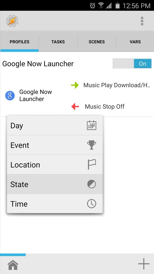 Pada titik ini, tekan tombol kembali perangkat Anda sekali untuk meninjau pekerjaan Anda. Jika semuanya sudah diatur dengan benar, Anda harus memiliki profil yang hanya akan menendang ketika peluncur Anda aktif dantampilan Anda dihidupkan. Ketika ini terjadi, berkas musik ambient Anda akan diputar pada yang tak terbatas loop-tetapi ketika salah satu dari kondisi profil Anda berhenti terpenuhi, tugas keluar Anda akan berjalan, menyebabkan musik berhenti.