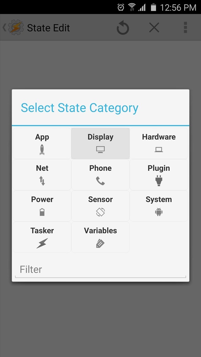 Dari menu utama Tasker lagi, lama-tekan bagian profil Anda yang berisi nama peluncur Anda. Dari sini, pilih “Add,” lalu pilih “Negara” dari menu berikut.