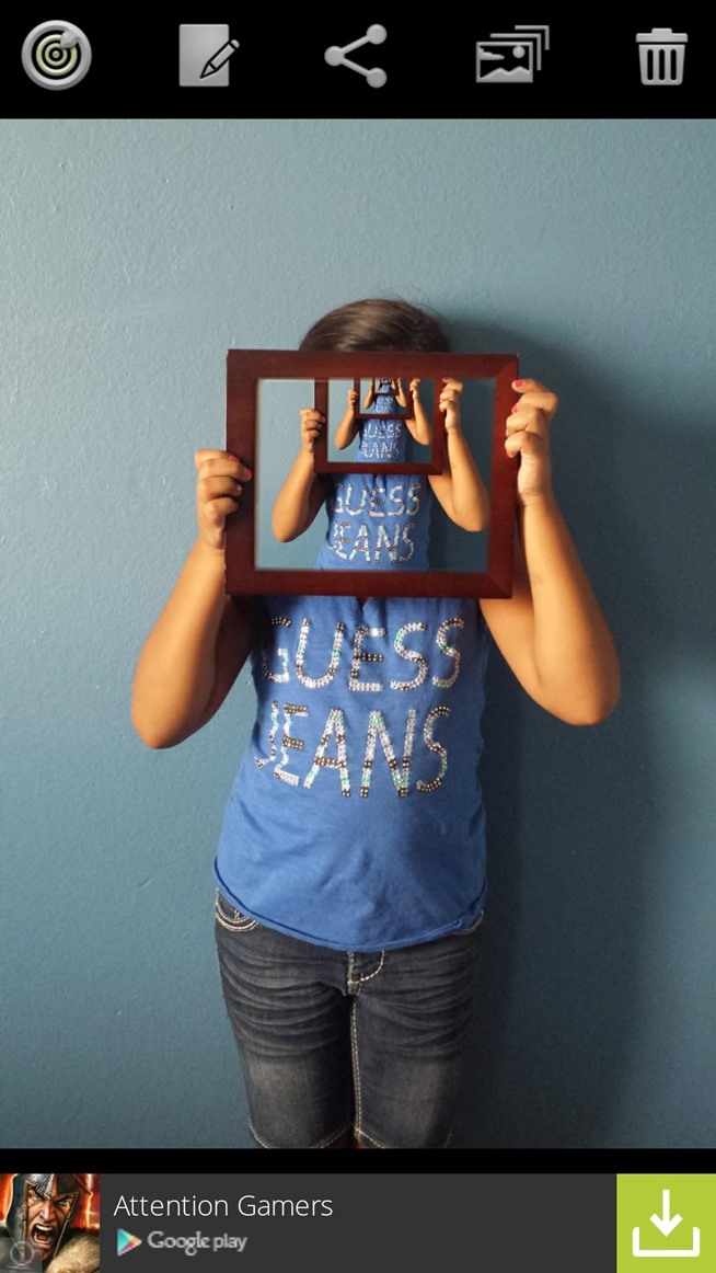 Anda akan melihat beberapa pilihan setelah menyimpan gambar: AnimasiImmersive, Mengedit, Share, Simpan ke Galeri, dan Sampah. The mendalam animasi adalah fitur yang paling menawan karena tanpa henti zoom ke gambar Anda dan jendela, yang merupakan kunci dalam efek Droste rekursif.