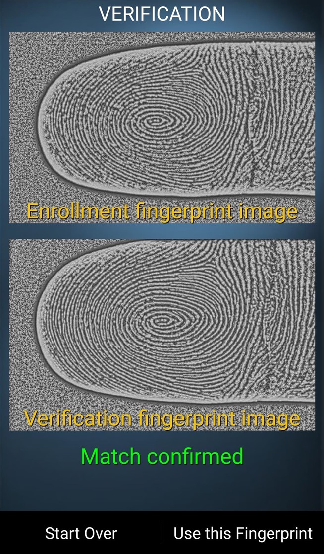 Dalam aplikasi, pilih Finger Mendaftar untuk memulai proses scanning. Pilih yang jari yang ingin Anda gunakan untuk unlocking, kemudian lanjutkan untuk memindai jari Anda tujuh kali. Selain itu, Anda juga dapat mengaktifkan pola dan PIN kunci dalam kasus kerusakan pemindai sidik jari.