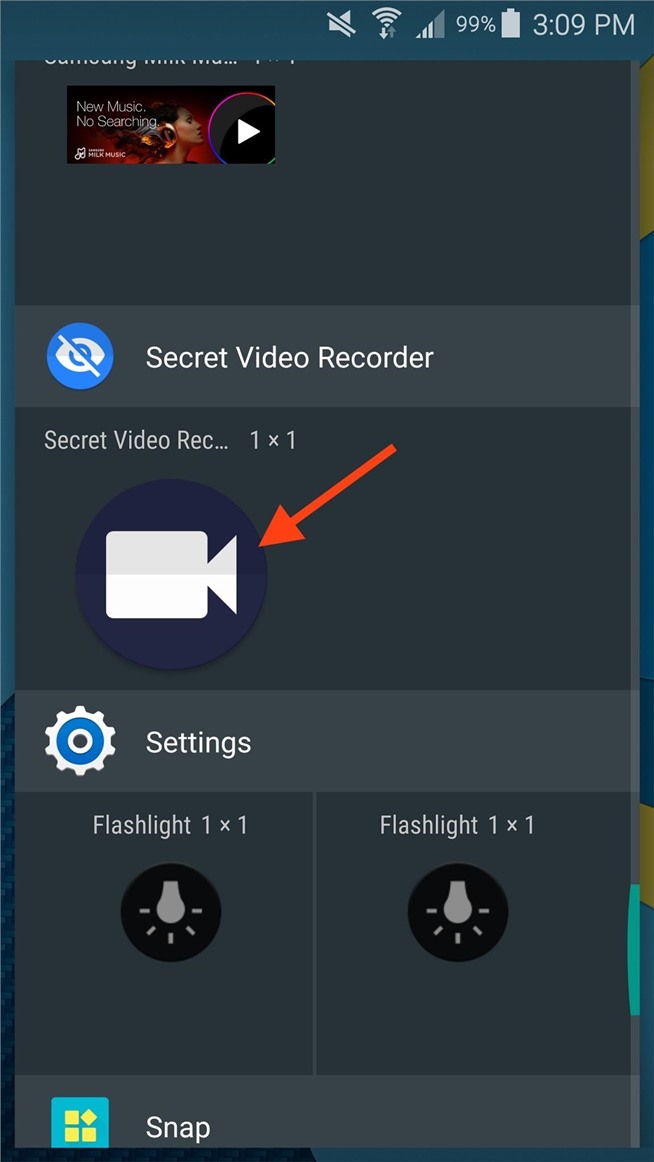 Untuk membuka aplikasi hanya dengan satu-tap, Anda akan perlu menerapkan widget aplikasi untuk homescreen Anda. Ketika Anda siap untuk merekam, cukup tekan widget untuk memulai.