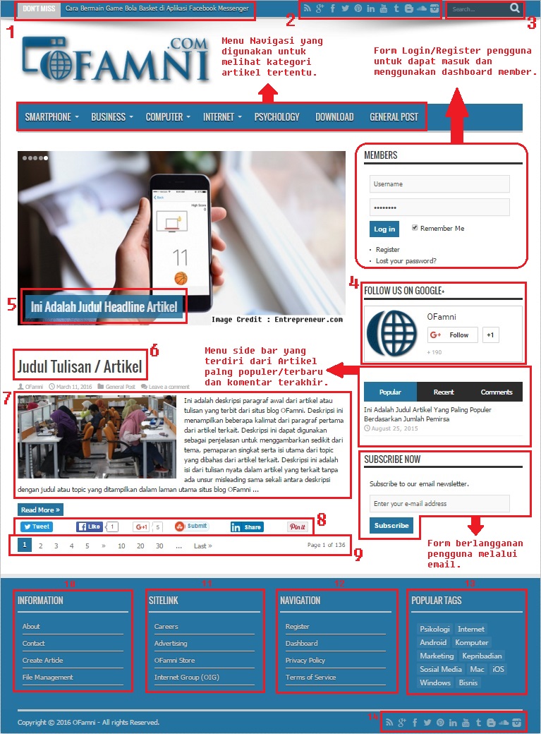 - Nav. Header Sosial Media : Navigasi sosial media yang terhubung dengan situs.